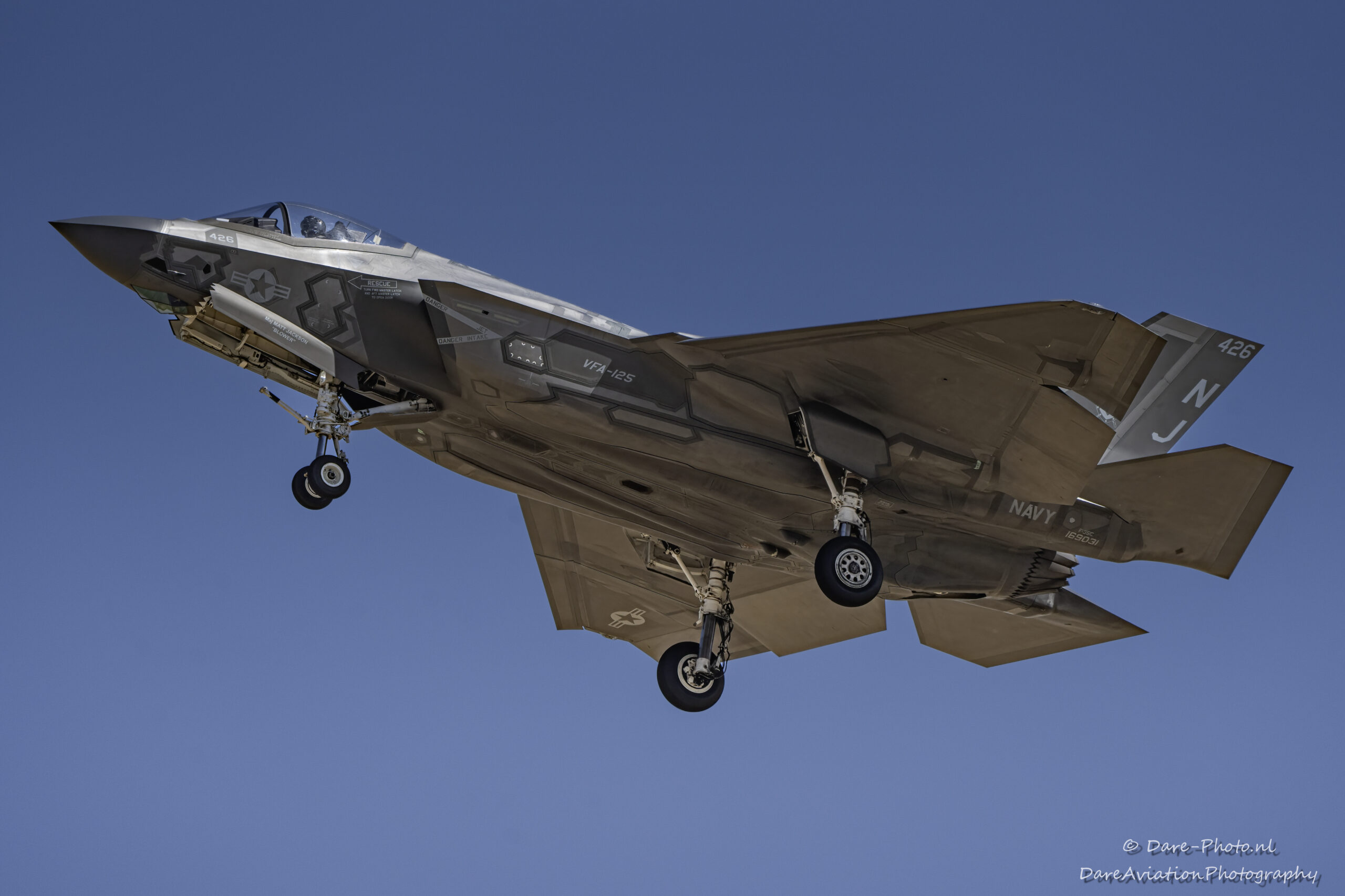 The ‘Warhawks’ quickly took the place of VFA-147 “Argonauts’ previously assigned to CVW-2, to prepare the ‘Argonauts’ for their planned homeport change to Marine Corps Air Station MCAS Iwakuni, Japan, while maintaining noteworthy Mission Capable rates. The squadron further executed previously planned Joint Strike Fighter Wing Lightning Sustainment Inspections (LSI) and readily adopted and executed the new F-35 fleet-wide Tier 2 Corrosion Production Aircraft Inspection Requirement (PAIR) that was based on the LSI.