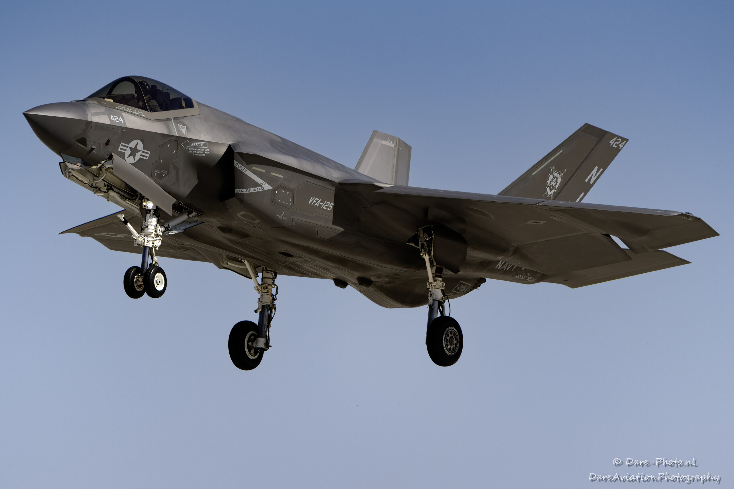 VFA-125 ‘Rough Raiders’ had served as the legacy F/A-18 Hornet FRS at Naval Air Station (NAS) Lemoore, CA until deactivation on October 1, 2010 with the remaining Hornet training incorporated into the Super Hornet FRS, VFA-122 ‘Flying Eagles’. On January 12, 2017 VFA-125 was re-activated at NAS Lemoore as the second F-35C Lightning II FRS and received their first batch of four aircraft, from VFA-101, on January 25, 2017.